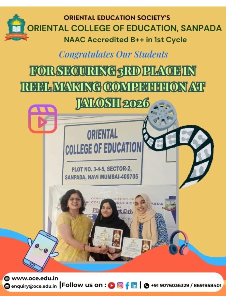 Our F.Y .B.Ed. Students Sarvat Khot and Saniya khot Securing 3rd Rank in Reel making Competition at Jalosh 2026